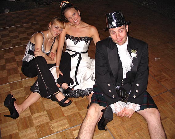 Emily seen here with Kim and an unidentified kilt-wearer